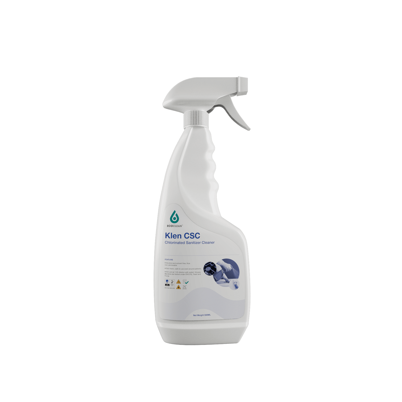 Klen CSC disinfectant solution is originated from Singapore, With a new generation quaternary system bactericidal formula, Klen CSC is an excellent multi-purpose germicidal product. In addition to killing germs, Klen CSC can also be used to remove mold on walls and kill mold effectively.
