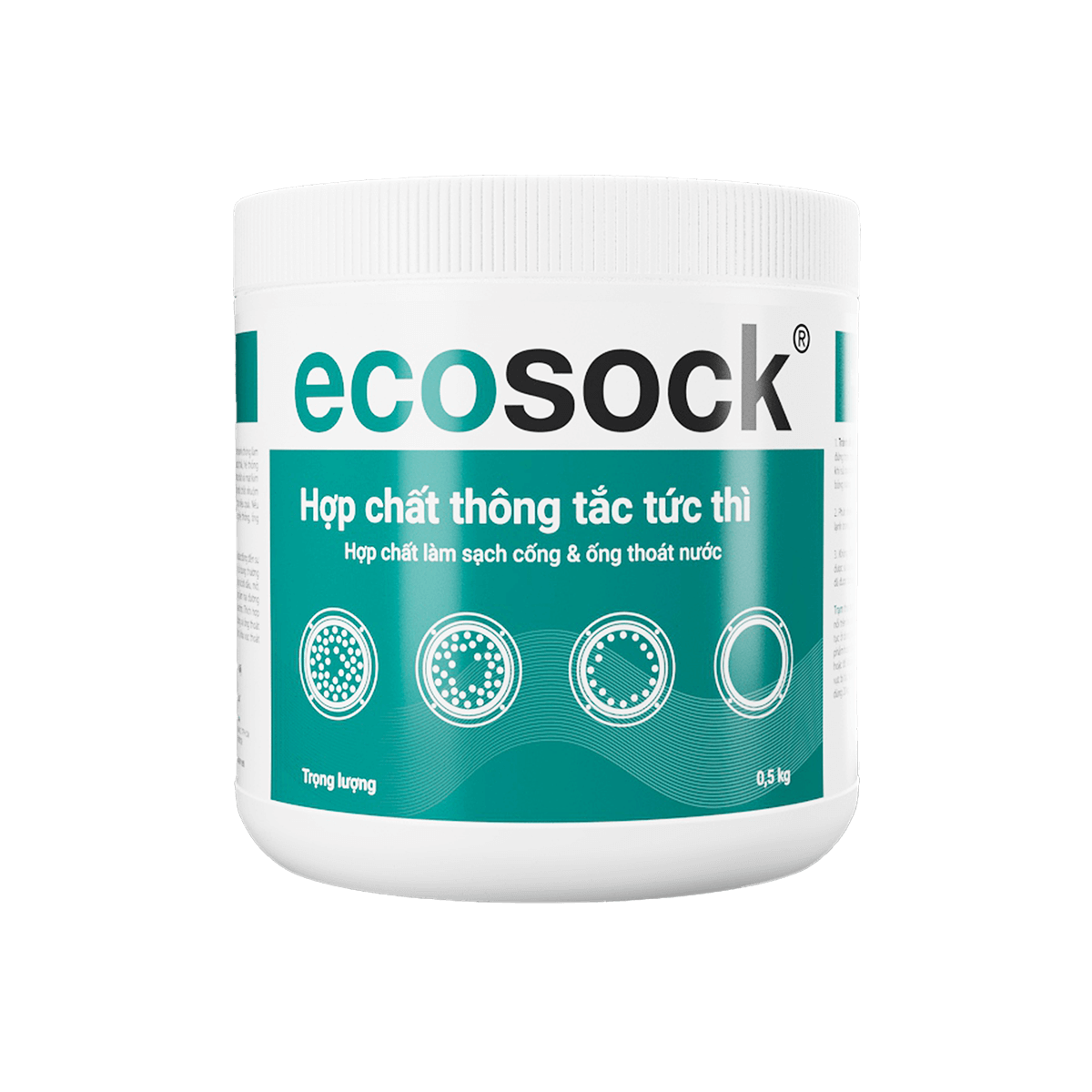 Eco-Sock™ drain cleaner is a super fast drain cleaner imported from the US, produced on a modern production line with an exclusive formula including compounds that can powerfully decompose grease, fat and dirt clogged in pipes after only 10 minutes of use.