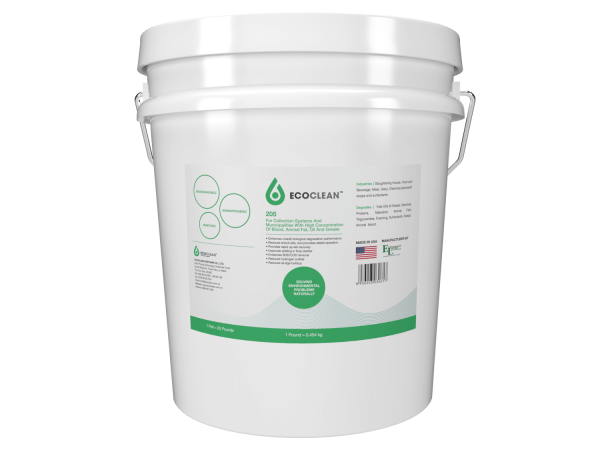 EcoClean™ 205 is a high potency, high bioavailability powder formulated for the treatment of food processing wastewater containing high levels of blood, animal and vegetable fats.